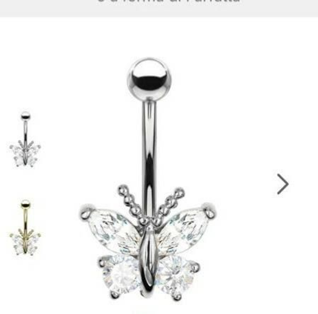 Piercing ombelico con farfalla, zirconi biancho. Acciaio chirurgico 316L 1.6x8mm