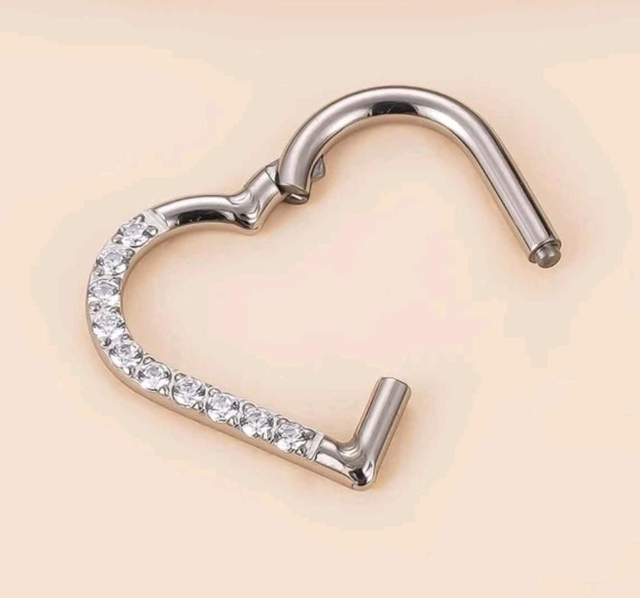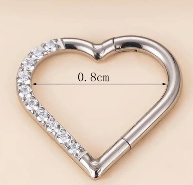 PIERCING CUORE Cliker in Titanio 1.2mm x 8mm con zirconi bianchi
