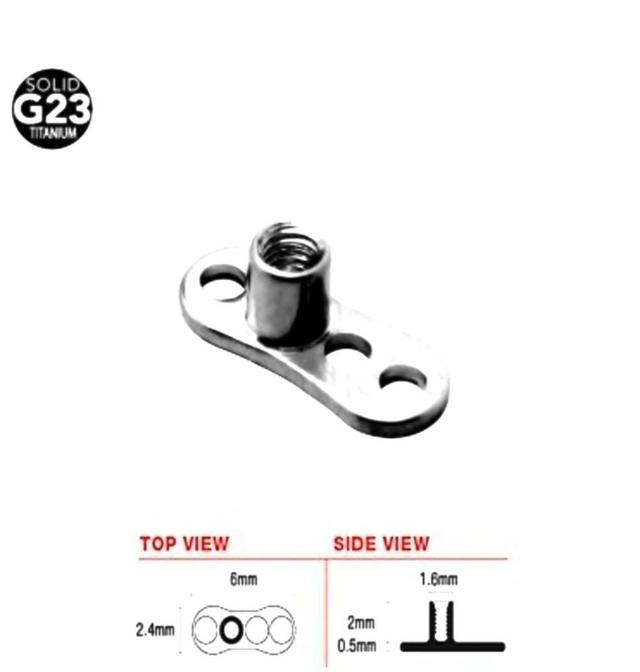 Dermal Anchor base con tre fori in titanio g23. h.2mm