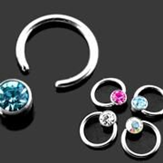 PIERCING acciaio chirurgico 1.2mm x 8mm. Pietre bianche
