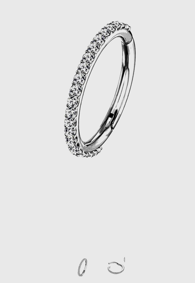 Segment clicker ring in acciaio chirurgico 316L contornato da cristalli CZ.